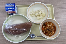 1 | 黒糖パン 牛乳 チリコンカン 粉ふきいも |